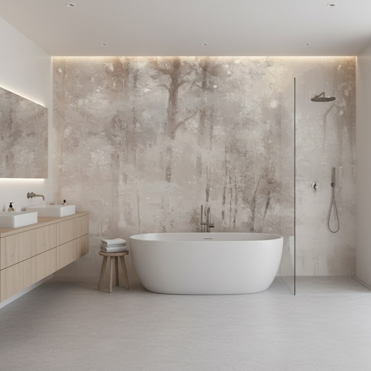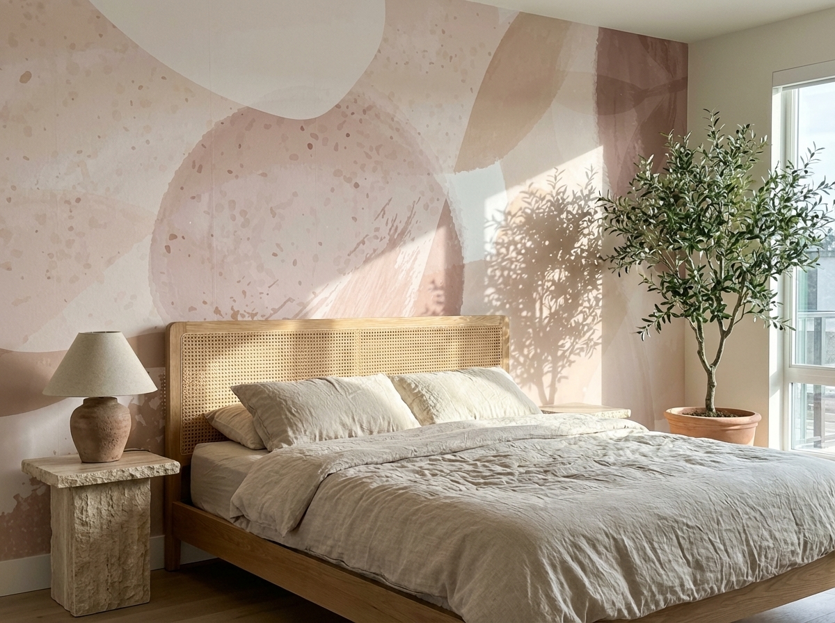 Ova tapeta nježnih tonova i apstraktnih oblika unosi toplinu i elegantnu suptilnost u svaki prostor. Idealna za dnevne boravke ili spavaće sobe, njezine zemljane nijanse stvaraju ugodnu atmosferu i osjećaj smirenosti. Svojom sofisticiranom estetikom savršeno se uklapa u moderne interijere, dodajući dašak umjetničkog izraza.