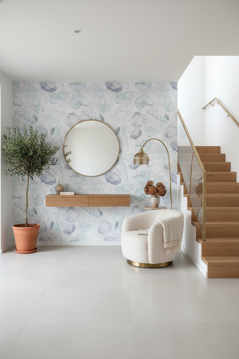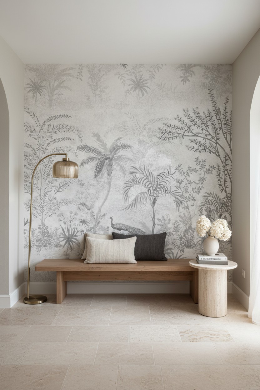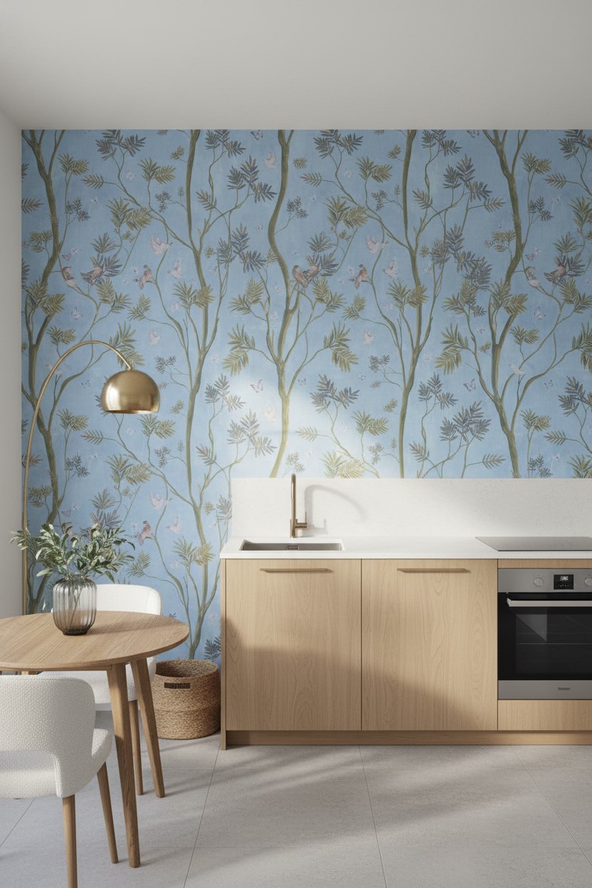• Nakon što ste tapetu samo prislonili na zid, krenite od vrha i odlijepite prvih 10-15 cm samoljepljive tapete. Koristite skalpel da odrežete papirnu pozadinu koja se nalazi na tom dijelu tapete. Pažljivo pritisnite tapetu na zid. Koristite četku za zaglađivanje kako biste lagano pritisnuli tapetu i uklonili eventualne mjehuriće zraka ispod nje. Nastavite odvajati ostatak trake tapete i postavljati je uz zid. Tijekom postavljanja, kontinuirano koristite četku za zaglađivanje kako biste osigurali ravnomjerno prianjanje i uklonili eventualne nepravilnosti.