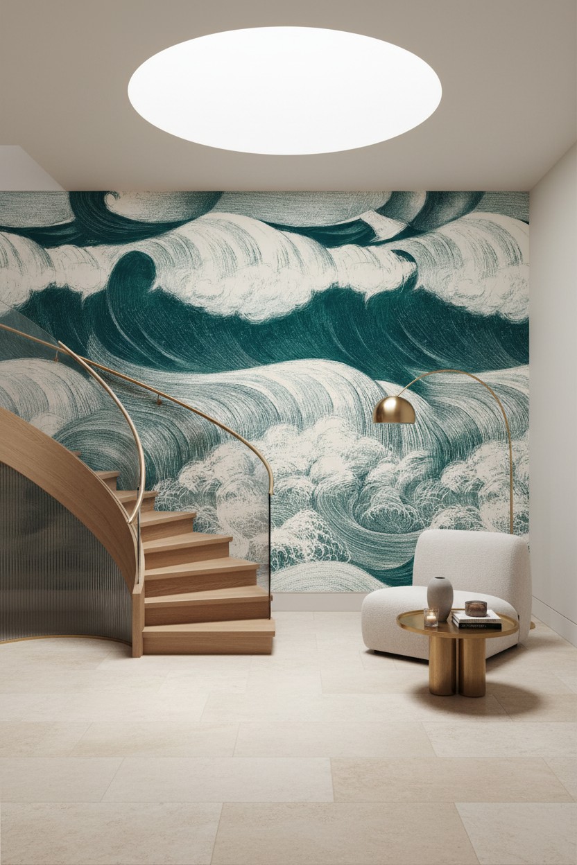 • Pri postavljanju trake tapete, postupak započnite slijeva na desno dok ste okrenuti prema zidu. Koristite vaservagu za označavanje okomito ravne crte širine ploče na zidu kako biste osigurali da prva traka tapete bude ravno obješena, koja je isto tako ključna za uspješno postavljanje cijelog murala.