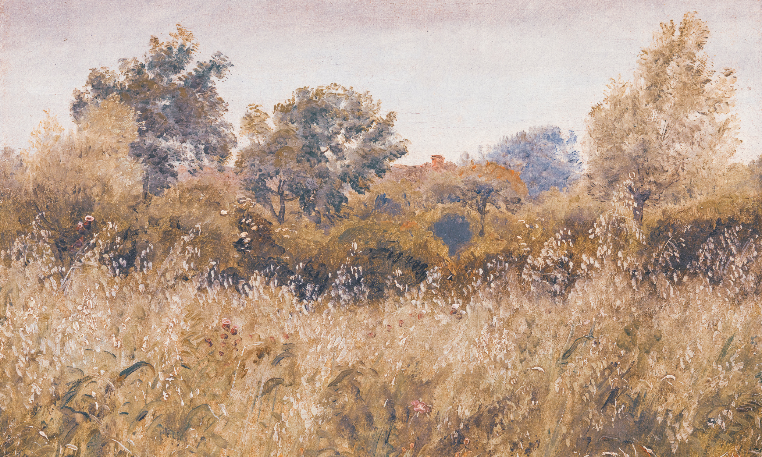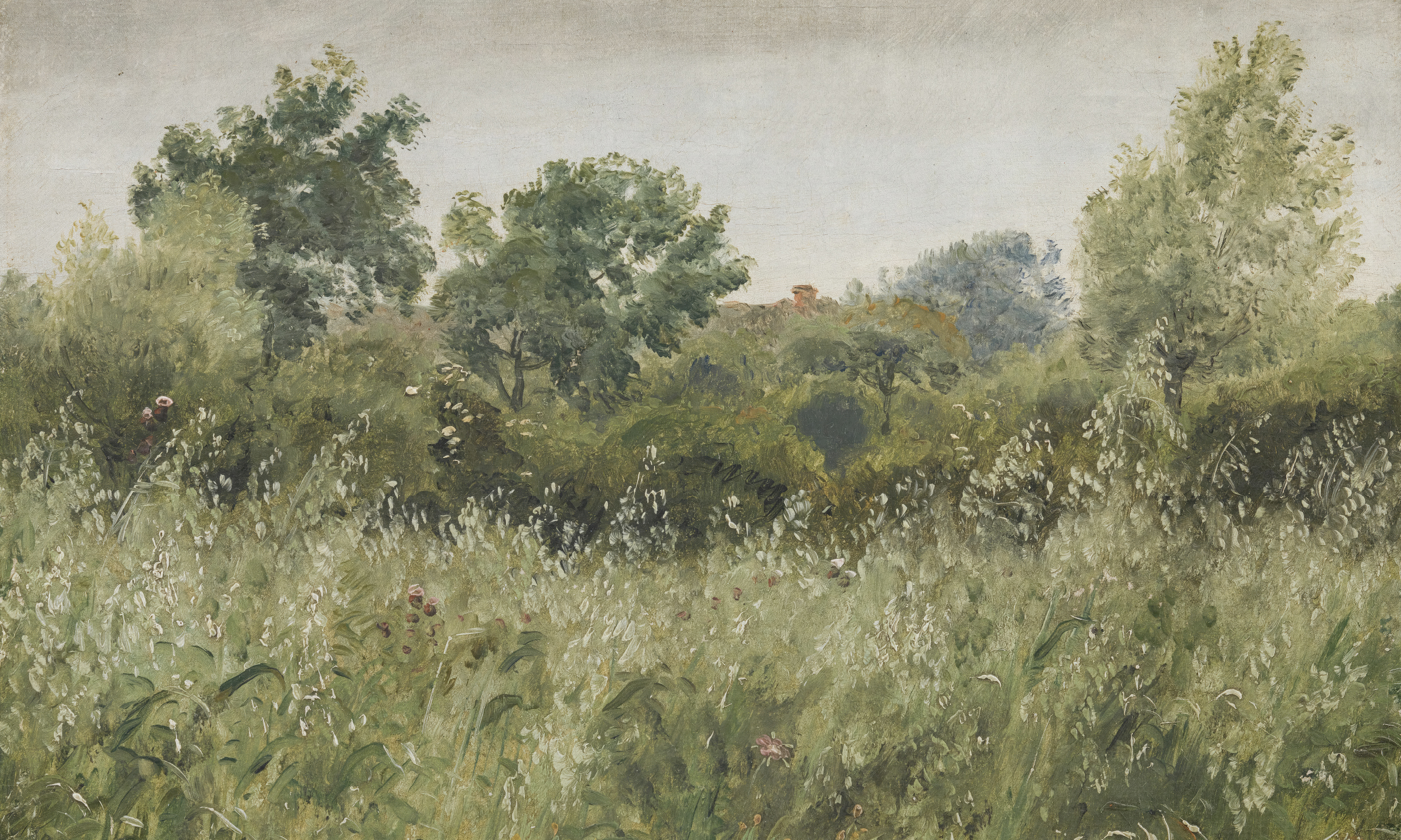 Ovo umjetničko djelo prikazuje bujni zeleni krajolik. Drveće je raskošno i vibrantno, stvarajući osjećaj mira. Raslinje u prvom planu je živo i raznoliko. Osjećaj prirodne harmonije ispunjava kompoziciju. Slika dočarava spokoj i povezanost s prirodom.