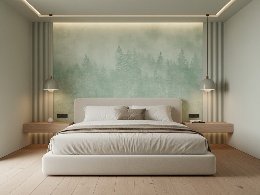 Slika prikazuje maglovitu šumu, koja stvara osjećaj smirenosti i tišine. Siluete drveća nježno se pojavljuju kroz maglovitu atmosferu, dodajući dojam tajanstvenosti. Ova tapeta savršena je za stvaranje umirujuće atmosfere u prostoru. Pastelne boje dodatno pojačavaju osjećaj mira i opuštanja. Ovo djelo unosi suptilnu eleganciju u svaki interijer.