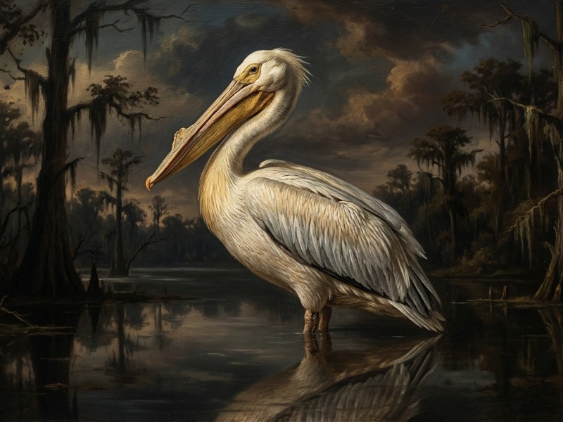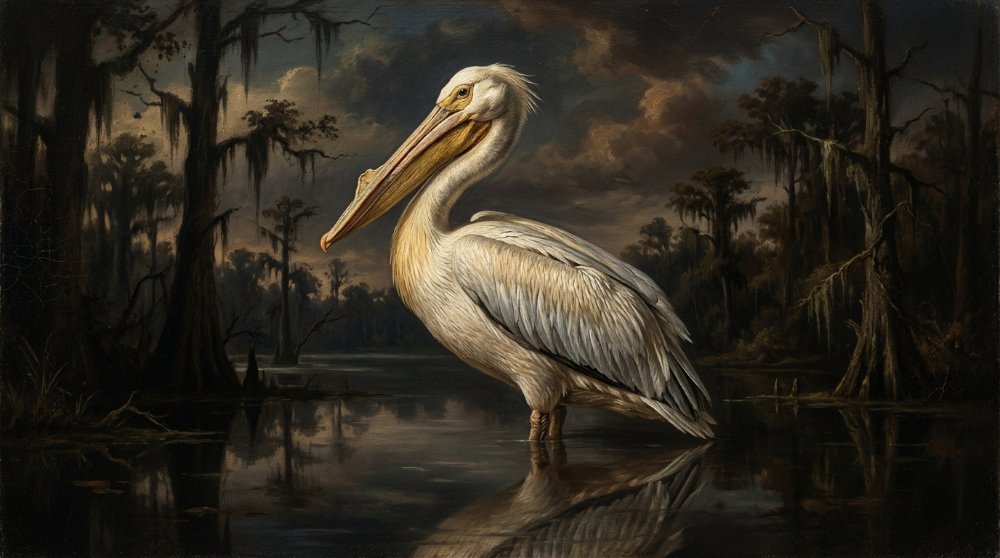 Unesite dašak bezvremenske elegancije i misterija prirode u svoj prostor uz ovu veličanstvenu zidnu tapetu. Prikazujući pelikana u stilu klasičnog ulja na platnu, ovaj dizajn hvata mirnoću močvarnog krajolika sa suptilnim, dramatičnim osvjetljenjem. Bogati zemljani tonovi, od duboke smeđe do kremaste bijele, stvaraju sofisticiranu atmosferu koja odiše 'Quiet Luxury' estetikom. Savršeno za radne sobe ili dnevne boravke gdje se traži umjetnički fokus i osjećaj povijesne težine.