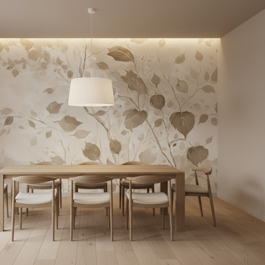 • Pri postavljanju trake tapete, postupak započnite slijeva na desno dok ste okrenuti prema zidu. Koristite vaservagu za označavanje okomito ravne crte širine ploče na zidu kako biste osigurali da prva traka tapete bude ravno obješena, koja je isto tako ključna za uspješno postavljanje cijelog murala.