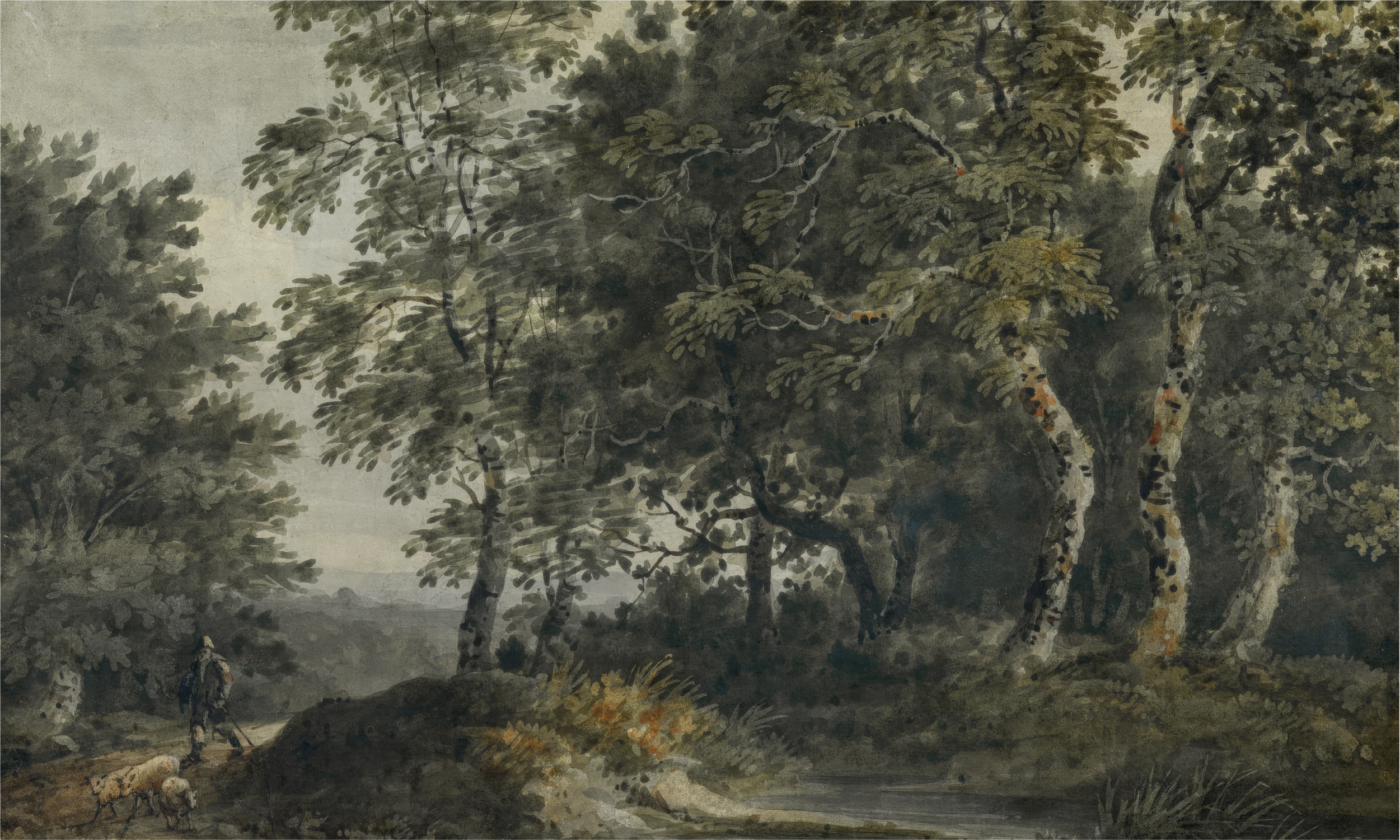 Slika prikazuje mirnu šumsku scenu s bogatom vegetacijom. Gusti krošnji drveća pružaju osjećaj zaštite i skloništa. U daljini se nazire blaga atmosfera koja poziva na istraživanje. Ova umjetnička kreacija odiše spokojem i harmonično uklapa elemente prirode. Savršen je prikaz ljepote šumskog krajolika.
